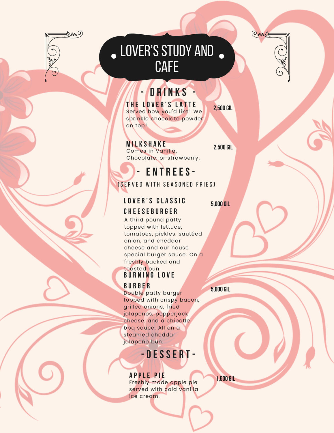 About Us:A Hyur and Au Ra fell in love and now they want to share their love and passion with you all!Lover’s Study and Cafe is hybrid venue of quiet library and study area as well as lively cafe and bar. We feature a full drink and food menu as well energetic bard music to provide a cozy and welcoming experience for all.Lover's Study and Cafe is a proud member of the Eorzean Roleplaying Alliance (E.R.A.)!